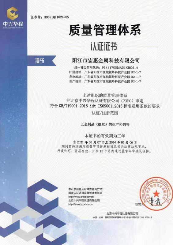 廣東宏惠金屬公司是家20多年一直專注鉆尾螺絲開(kāi)發(fā)與生產(chǎn)的企業(yè),是國(guó)內(nèi)較早做鉆尾的廠家之一,同時(shí)也是國(guó)內(nèi)專業(yè)開(kāi)發(fā)生產(chǎn)鉆尾螺絲的企業(yè)之一。 我司地址為于廣東省陽(yáng)江市江銀嶺科技園距沈海高速白沙出口不到2公里,距陽(yáng)江高鐵站也只有十余公里交通便利。 公司占地120畝,擁有超500臺(tái)套專業(yè)設(shè)計(jì) 生產(chǎn) 檢測(cè)設(shè)備。一個(gè)超200人的專業(yè)團(tuán)隊(duì),能夠嚴(yán)格按照ISO9001質(zhì)量體系要求生產(chǎn)符合GB DIN AS3566 ANSI JIS BS等標(biāo)準(zhǔn)的產(chǎn)品,生產(chǎn)銷售各種高品質(zhì)緊固件系列產(chǎn)品,為中高端客戶提供優(yōu)質(zhì)服務(wù)。也可按照客戶要求設(shè)計(jì)生產(chǎn)各種鉆尾,年產(chǎn)高品質(zhì)碳鋼 不銹鋼鉆尾螺絲2萬(wàn)余噸.在各大客戶的鼎力支持下產(chǎn)品暢銷全國(guó),并遠(yuǎn)銷亞 非 拉 歐等地,在這20多年發(fā)展的道路上我司堅(jiān)持“以質(zhì)量求生存,以信譽(yù)求發(fā)展”的精神理念不斷完善公司體系。
